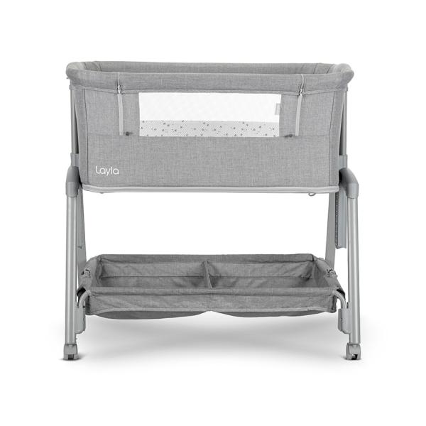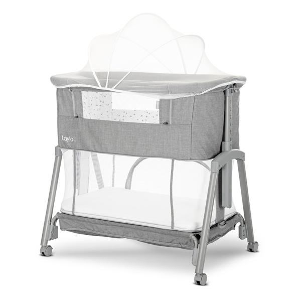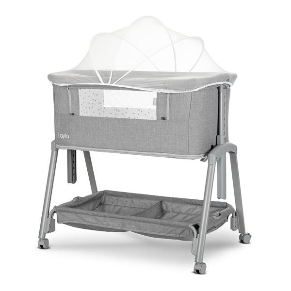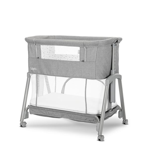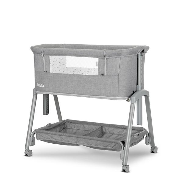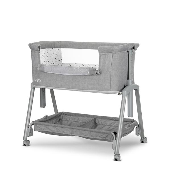 Patut Co Sleeper copii, Layla 2 in 1, cu latura pliabila, reglabil pe inaltime, sistem anti-reflux, Grey