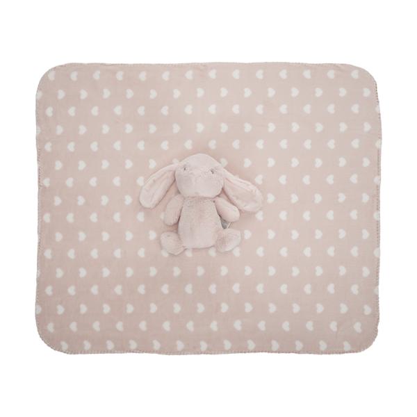 Paturica moale cu jucarie din plus iepuras, Nappy, 90 x 75 cm, 0 luni+, Pink