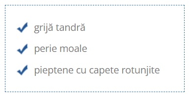 - pieptanul are colturi rotunjite, care ofera o alunecare usoara prin parul bebelusului.