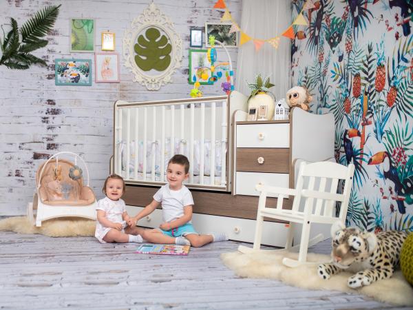 Salteaua patului balansoar poate fi pozitionata la 2 nivele de inaltime diferite, astfel incat parintii vor avea acces facil la bebe, in toate etapele de crestere.