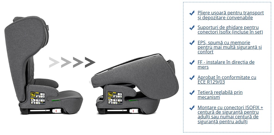 Caracteristici speciale | i-Size, Isofix, pliabil |