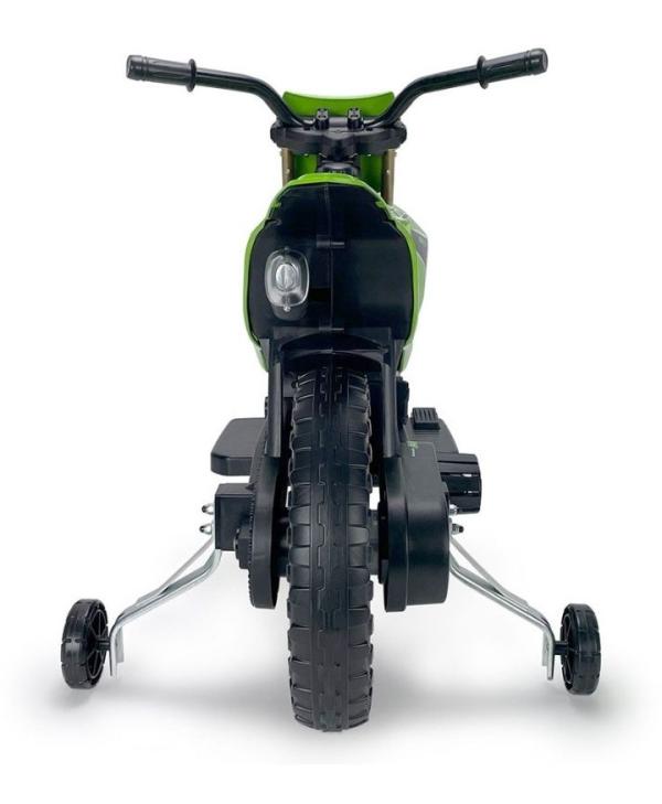 Motocicleta electrica pentru copii, 12V, licentiat Kawasaki KX85, tip cross, cu roti ajutatoare, 3-5 ani, verde